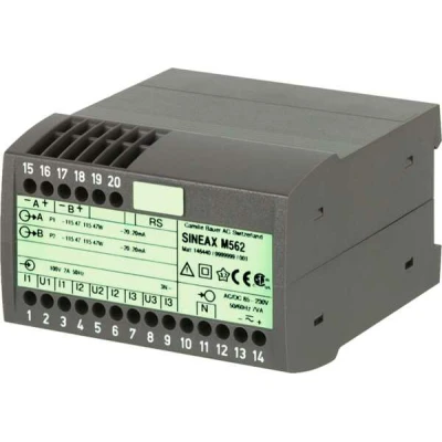 For simultaneously acquiring 2 freely selectable measured quantities in electrical systems. Equipped with 2 electrically isolated current outputs.